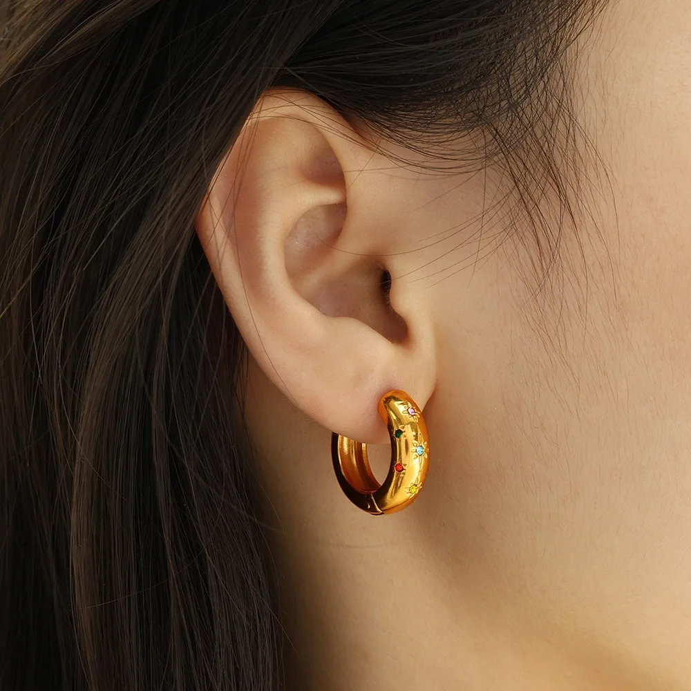 18K Gold Disco Earrings Light Luxury Ins Fashion Colored Rhinestones Niche Shining Eight-Pointed Star Ear Stainless Steel